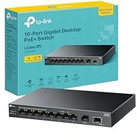 TP-Link 10-Port Gigabit Desktop Switch with 8-Port PoE+, 61 W PoE Budget, 30 W PoE output, Up to 250m PoE Transmission. Traffic Separation, Plug and Play, Fanless, Metal Case (LS1210GP)
