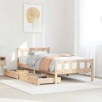 Get a better restful night's sleep from this bed frame! It makes a welcoming addition to any bedroom. Stable and long-lasting frame: Solid pinewood is known for its strength and durability. Its straight grains and distinctive knots contribute to its rustic charm. Slatted base for optimal support: The bed frame is equipped with a slatted base for support and breathability for your mattress. Make full use of space: This bed frame features two drawers underneath, providing storage for items like extra bed...