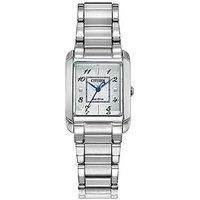 Citizen LADIES ECO-DRIVE CITIZEN L Classic lines and subtle sophistication make the Citizen L Bianca a charming addition of luxury. With a design inspired and celebrating feminine motifs in art deco, the distinctive stainless steel timepiece is a captivating accent on the wrist that's perfect for everyday wear. A curved rectangular shape defines the watchs 22mm silhouette, with a subtle crown and stainless steel bracelet rounding out the look. On its mother-of-pearl dial, alternating applied and printe...