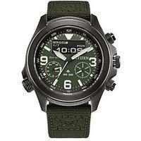 Citizen Promaster Land Combination The latest adventure-ready timepiece from Citizen's Promaster Land series. This new timepiece is packed with features and ready for action, featuring a grey-tone stainless steel case, with a sporty nylon Cordura strap. On the dial, luminous hands and markers stand out against a forest green background for high legibility, while a rotating compass scale surrounds the look, and the digital-analogue display ensures complete focus on the mission. The watch's advanced cap... - Manufacturers part number: JV1005-02W