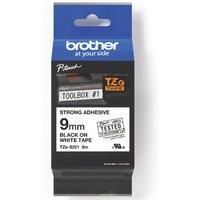 Brother TZe-S221 Labelling Tape Cassette, Black on White, 9 mm (W) x 8 m (L), Strong Adhesive, Brother Genuine Supplies