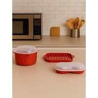Prestige Microwave Cookware Set Upgrade your microwave cooking with our versatile 3-piece microwave cookware set. This set includes a bacon crisper, a single 1L rice cooker, and a multipurpose egg poacher and omelette maker, each designed to make your kitchen tasks easier and more efficient. Together, these three items provide a comprehensive solution for your microwave cooking needs, offering convenience, efficiency, and safety in one complete set. Material Content: Plastic
