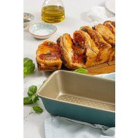 The Prestige Nadiya Loaf Tin has a gold non-stick PFOA-free interior to prevent foods from sticking and holds the perfect heat for browning. There is a handy internal measurement guide to help you match your recipe to the right tin. This piece of bakeware is dishwasher safe for ease of care and it comes with a 10-year Prestige guarantee. Prestige has teamed up with Bake-off Winner and TV chef Nadiya Hussain to bring you a cleverly designed carbon steel bakeware and ovenware range.Nadiya Loaf Tin FeaturesPrestige loaf tinPart of the Nadiya rangeHeavy gauge steelNon-stick exterior and interiorPFOA freeAnti-warp edgesTextured surface for airflow and food releaseDishwasher and oven safePrestige 10-year guaranteePrestige's Ref.MPN: 48543Colour: TealSizes: 9"" x 5""PM Ref. 1407082 - Manufacturers part number: Prestige_5000263485434
