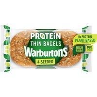 Protein Thin BagelsOur seeded protein thin bagels are baked using a blend of seeds and pulses, which are a naturally good source of plant based protein.. Soft & Sliced. 8g protein. Plant Based Per Thin Bagel. High Fibre. 160 Calories Per Thin Bagel. 671kJ/160kcal. Suitable for Vegans and Vegetarians. Vegetarian Society Approved - Vegan. Kosher - KLBD. HFA Approved. Warburtons. Dietary InformationHalal, Kosher, Suitable for Vegans, Suitable for VegetariansManufacturers AddressWarburtons Limited,Hereford ...