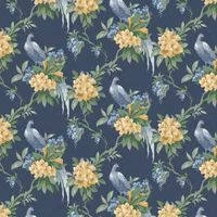 Playfully perched beautiful Pheasant birds sit amongst blooming branches, featuring vibrant flowers and trailing leaves against a contrasting background. Seen here in the Dark colourway. - Manufacturers part number: Crown_M1661