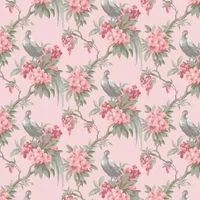 Playfully perched beautiful Pheasant birds sit amongst blooming branches, featuring vibrant flowers and trailing leaves against a contrasting background. Seen here in the Pink colourway. - Manufacturers part number: Crown_M1665
