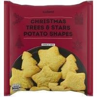 Shaped potato trees and stars made from seasoned rehydrated potato flakes, pre-fried in sunflower oil.