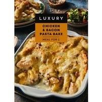 Cooked penne pasta in a creamy cheese sauce with smoked diced pancetta, vintage Cheddar cheese, cooked chicken breast strips, topped with vintage Cheddar cheese.