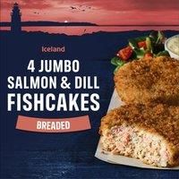 Skinless and boneless salmon and pollock mixed with dried potato flakes and dill, coated in breadcrumbs.