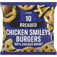 Pre-fried, chopped and formed chicken breast in a crispy breadcrumb coating.