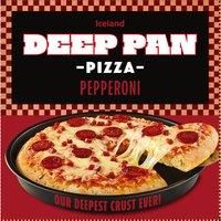 A deep pan pizza base topped with tomato sauce, mozzarella cheese and smoke flavour pepperoni.