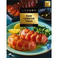 Raw lobster tails in shell with a protective ice glaze and butter pellets with Cornish sea salt.