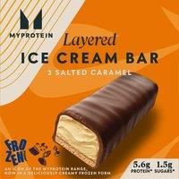 Salted caramel flavour ice cream and cookie base with a chocolate flavour coating, with sweeteners.
