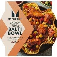 Cooked basmati rice mix with cranberries, cooked seared tikka marinated chicken breast pieces, marinated chickpeas and grilled peppers in a spicy balti sauce in a wheat flour tortilla.