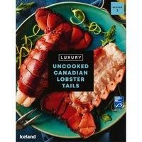 Raw lobster tails in shell, in a protective ice glaze.