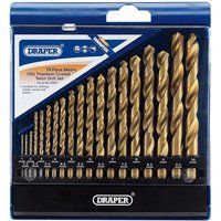 High speed steel drill bits with titanium finish. Packed in plastic storage case.Contents:18 x Drill bits: 1.0, 1.5, 2.0, 2.5, 3.0, 3.5, 4.0, 4.5, 5.0, 5.5, 6.0, 6.5, 7.0, 7.5, 8.0, 8.5, 9.0, 9.5, 10mm ... - Manufacturers part numbers: Draper_|24907