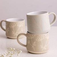 * Set of 2 mugs* Durable stoneware* Dishwasher safe* Wax resist botanical design* Neutral matt finish Enjoy your daily brew with this charming Mason Cash Botanical mug set. Made from hard-wearing stoneware, these mugs are perfect for everyday use. They feature a lovely wax resist floral design of Olive and Gypsophila leaves, finished with a subtle matt glaze. With a generous 400ml capacity, they're just the ticket for tea, coffee, or hot chocolate. Plus, they're conveniently dishwasher and microwave s... - Manufacturers part number: 30988422