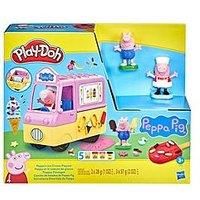 Peppa Pig and her brother George are ready for Play-Doh fun with this arts and crafts set for kids 3 and up The figures can ride in the front of the truck, which has molds to make pretend goodies and back wheels that make syrup shapes. Kids can also make hand-held Play-Doh ice cream cones, ice pops, and teddy bear treats by snapping one of the 3 large molds into the back of the truck and filling it up. This set comes with 5 Play-Doh cans in colors like red, teal, pink, yellow, and brown for plenty of Pe...