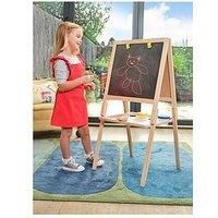 Casdon Casdon Wooden Art Easel Traditional, wooden framed easel with chalkboard surface and a magnetic, wipe clean side for no-mess drawing. Includes clips to attach paper for painting, plus 2 x water beakers, chalk and wiper. Height 106cms Depth: 47 CM Height: 106 CM Width: 48 CM Age Range: 3+ AGE : 3 to 8 yrs