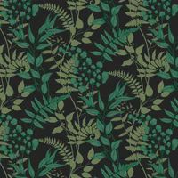 A digital print design with rich colours and an all over leaf and fern pattern. Shown in the Midnight colourway of greens on a dark ground. Note long pattern repeat with an offset match. - Manufacturers part number: Graham & Brown_115061