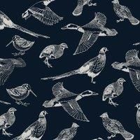 A striking rich paper featuring a flock of birds including pheasants and ducks. Shown in the french navy colourway. - Manufacturers part number: Joules_118555