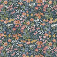 An all over floral design. sprinkled with pretty flowers. Shown in Dusk colourway with multi coloured flowers, blue and green leaves and a blue background. Note long pattern repeat of 97cm or 38 inches. - Manufacturers part number: Graham & Brown_120629