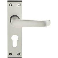 Pair of satin anodised aluminium door handles. Suitable for use with the most of UK case size euro profile locks. Suits 8mm spindle with sprung lever handle. Rectangular Anodised Aluminium Construction Suitable Door Thickness: 44mm Suitable for Timber Doors Suitable with Euro Profile Sashlock 5 Year Manufacturer's Guarantee (T&Cs Apply) For Internal Use Suits Most UK Case Euro Profile Locks Sprung Lever Handle Mechanism Non-Handed - Manufacturers part number: 5078P