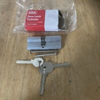 * Standard security level * Supplied with three cut keys * 30,000 differs * Sizes are overall lengths - first measurement is the external side An anti-drill and anti-pick replacement 6 pin Euro profile double cylinder, suitable for use with all Euro type mortice locks and multi-point lock products. 1 year manufacturer's guarantee. Manufactured from solid brass. Available in single, double and thumbturn variants, and brass and nickel finishes. ERA 6 Pin Euro Double Cylinder 35-40mm Nickel in Silver Brass