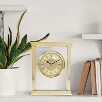 * Roman numeral design* AA Battery operated* Free standing* Vintage design* 2 year guarantee Classic and uncluttered, is what you'll get with this Halton Mantel Clock. The elegant brushed metal Roman dial is accentuated by the spun chapter ring and glass lens, which is all set into glass. - Manufacturers part number: 30936988