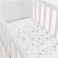Silentnight Safe Nights Crib Fitted Sheets, Grey Star, Pack of 2