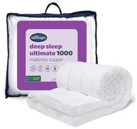 The Silentnight Deep Sleep Ultimate Mattress Topper 1000 provides gentle support and adds another layer of comfort to your existing mattress as well as helping to refresh and rejuvenate it. An extra 10cm depth provides ultimate cushioned comfort, the quilted cover features internal walls to ensure the gently supportive filling stays in great shape and is always plump. 10cm depth for cloud like cushioned comfort so you can experience a deeper sleep. Set includes: 1 x Mattress Topper. Suitable for single ...