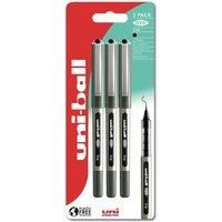 This pack of 3 Black UB-157 Rollerball Pens feature medium tips and liquid pigment ink that protects against document tampering and enables fluid, skip free handwriting.The uni-ball Eye fine contains uni Super Ink, which is fade resistant, water resistant and tamper proof. A unique 'uni-flow' system ensures a continuous flow of ink right down to the last drop. This pack is made up of plastic free packaging making it an environmentally friendly alternative to plastic.. Pack of 3. 0.7mm medium line. Consistent smooth writing. Plastic free packaging . Fade resistant, water resistant and tamper proof ink. Approximate dimensions (mm) H 179 W 80 D 11 - Manufacturers part numbers: 238212078|uni-ball_