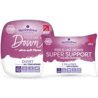 Down is the extremely lightweight, comfortable & insulating soft breast feathers of ducks and geese that they use to incubate their eggs. It's quite rare & very costly, so Slumberdown created the next best thing! The lovely and snuggly hollowfibre filling is soft and comfortable, just like down, and the luxury microfibre cover feels wonderful to snuggle up into - it gently wraps around your body so you can be cosy and still move freely through the night. This 13.5 tog all seasons Feels Like Down duvet is ideal for all-year-round use: made up of a lightweight 4.5 tog, and a mid-weight 9 tog duvet, you can use them separately as the seasons change throughout the year, or simply join them together with the secure fastenings to create a super snuggly and warm 13.5 tog winter duvet. Resembling a luxurious down duvet, but without a feather in sight, its non-allergenic which means its perfect for allergy sufferers. | Slumberdown Feels Like Down 13.5 Tog (4.5+9 Tog) All Season Duvet in White |... - Manufacturers part number: Slumberdown_5012924081602