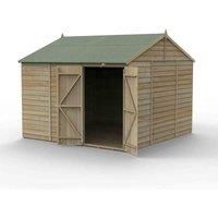 Available in a range of designs and sizes, Forest 4Life Overlap Pressure Treated Sheds are beautifully handcrafted here, in Great Britain. Packed full of premium features, they are the best range of overlap sheds Forest has ever made. This particular model is the 10x10 Windowless Double Door Reverse Apex Shed (3.21m x 3.01m), making it perfectly suited to people requiring secure garden storage for tools and equipment.Fully Modular Design, Pressure-Treated Wood and 4Life GuaranteeThis garden shed is expe...