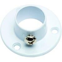Pack of 2 White finish retaining end sockets for use with 19mm diameter White finish tube/rail Ideal for supporting wardrobe rail Each socket has a retaining screw for holding tube/rail securely in place.