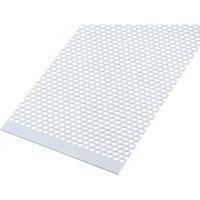 This anodised aluminium sheet is punched with 4mm diameter holes and has a silver finish.