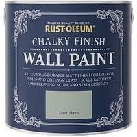 Rust-Oleum Chalky Finish 2.5-litre Furniture Paint - Laurel Green Bring a new lease of life to the room of your choice with this 2.5-litre tin of Chalky Finish Wall Paint from Rust-Oleum. Water-based with virtually no odour, it’s made to be easy and convenient to use, working well on most substrates including plaster, brick and concrete. A classic smooth touch, flat matt finish means the beautiful laurel green colourway is incredibly effective when creating a feature wall, and it’s extra-dur...