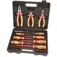 This Hilka 11 piece VDE screwdriver and pliers set is fully insulated and tested to 1000 volts. with soft grip handles. The set includes 7 screwdrivers and 3 pliers each with soft grip handles as well as a voltage tester. This DIY essentials set comes packaged in a handy storage case. Contains: 4 slotted screwdrivers: 3 x 75mm, 4 x 100mm, 5.5 x 125mm, 6.5 x 150mm. 3 Philips screwdrivers: No.0 x 75mm, No.1 x 100mm, No.2 x 100mm. Voltage test screwdriver with pocket clip: 100 - 250v testing range. 6" VDE... - Manufacturers part number: 34688011