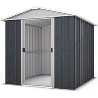 This modern looking 6x4.5ft apex roof steel shed is ideal for storing items such as garden tools, lawnmowers and outdoor toys. It requires virtually no maintenance due to its durable hot dipped galvanised steel construction. Double sliding doors give easy access to the interior, and the tall peaked roof helps to give greater storage capacity. Parts are pre-drilled and numbered for DIY assembly.