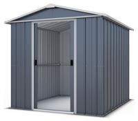 This Castleton metal apex shed is a great garden building for giving you outdoor space and area for tools, machinery and garden accessories. Cleverly designed and made from premium steel, this attractive apex roofed shed with lockable sliding doors provides a durable and weather-resistant storage solution which is fire safe and never requires maintenance. Ideal for tidying away items such as garden tools, lawnmowers and outdoor toys, this long-lasting and durable shed requires virtually no maintenance d...