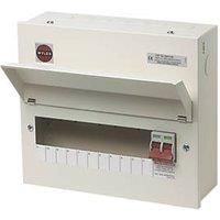 18th Edition Amendment 2. All-metal enclosure consumer unit with 100A double pole main switch and space for 11 x Wylex MCBs or RCBOs. No-miss terminal, fixed busbar and cable entry knockouts on the top, bottom, left, right and rear. 100A Mains Switch Fixed Busbar DIN Rail Supplied Top, Bottom, Left, Right & Rear Cable Entry Points - Manufacturers part number: SFNM1106