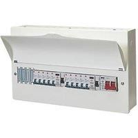 18th Edition Amendment 2. Flexible configuration. 100A main switch and factory fitted surge protection device (pre-wired and connected). Curved visor with temporary locking facility. 40kA Type 2 SPD 100A Mains Switch 2 x Type A 80A 30mA RCDs 10 x Type B MCBs (3 x 6A, 2 x 16A & 5 x 32A) 4 Blanks Flexible Busbar DIN Rail Supplied Top Left, Bottom Left & Rear Cable Entry Points Low Smoke & Fume Paint - Manufacturers part number: GB6SFNM14HIBU10S1