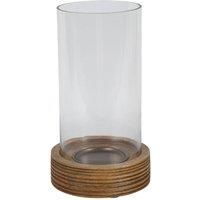 Add a touch of natural elegance to your space with our Glass & Wood Hurricane Candle Holder. Featuring a sleek, clear glass cylinder set atop a distinctive wooden base with sculpted, layered ridges, this piece blends simplicity and texture. The wooden base's stacked, grooved design adds depth and visual interest, contrasting beautifully with the smooth glass to create a balanced aesthetic. Perfect for a pillar candle, it offers a warm, inviting glow for any room. Perfectly paired with our 7x19 Pillar C...