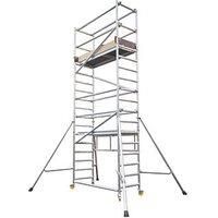 Heavy-duty trade platform and tower system. Lightweight and versatile for indoor and outdoor use. Base pack, with compact design, makes it easy to manoeuvre and transport through standard doorways and corridors. Folding frame, with snap-click system, for quick set-up and operation by one person. Platform height of 3.7m and a safe working height of 5.7m. This professional tower system is available in modular packs to build the tower up to 5.8m platform height. Max. Platform Height: 3.7m 2 x (0.6 x 1.9m) ... - Manufacturers part number: 38063700