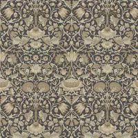 A large scale interlacing trailing floral design in five contemporary colour ways. Shown here in charcoal and gold with metallic gold highlighting inks. Wide width. - Manufacturers part number: Morris_216027