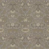 A large scale interlacing trailing floral design in five contemporary colour ways. Shown here in taupe and gold with metallic gold highlighting inks. Wide width. - Manufacturers part number: Morris_216028