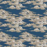 Thought to date from the late 19th century, this striking, smart cloud wallpaper brings a real feeling of calm and tranquillity into the home. Metallic highlights represent the sun’s rays casting light across this captivating design, shown here in a yacht blue colourway. Other colourways are available. A wide width wallpaper. - Manufacturers part number: Sanderson_216602