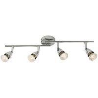 Steel construction. Simple spotlight bar with chrome plate finish. Fully adjustable so light can be directed exactly where required. Suitable for accent lighting. IP20: For Indoor Use Modern Design Adjustable Heads Steel Body Max. Wattage: 50W Tilt Angle 350 - Manufacturers part number: 66004