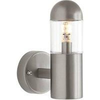 Contemporary, brushed stainless steel wall light with domed top. Clear polycarbonate shade. Fixed. IP44: For Outdoor Use Warm White Modern Design 200lm Stainless Steel Body Polycarbonate Lens Up to 25,000 Hours Life Fixed - Manufacturers part number: 9429J