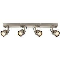 The modern energy efficient Dex 4 Spot Light Bar Chrome in brushed & polished chrome finish. Ideal for use in living rooms dining rooms bedrooms and kitchens. Rated IP20 the light is dimmable and requires 4 x GU10 LED bulbs.